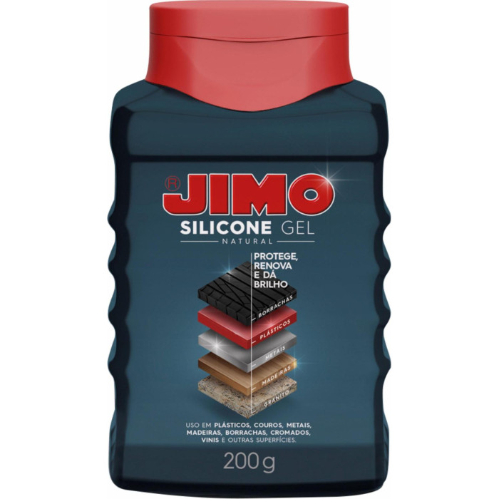 JIMO SILICONE GEL es un producto a base de silicona en medio acuoso especialmente formulado para proteger, conservar y dar brillo a los materiales, destacando y renovando el color de gomas, plásticos, vinílico, maderas y otras superficies.